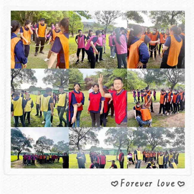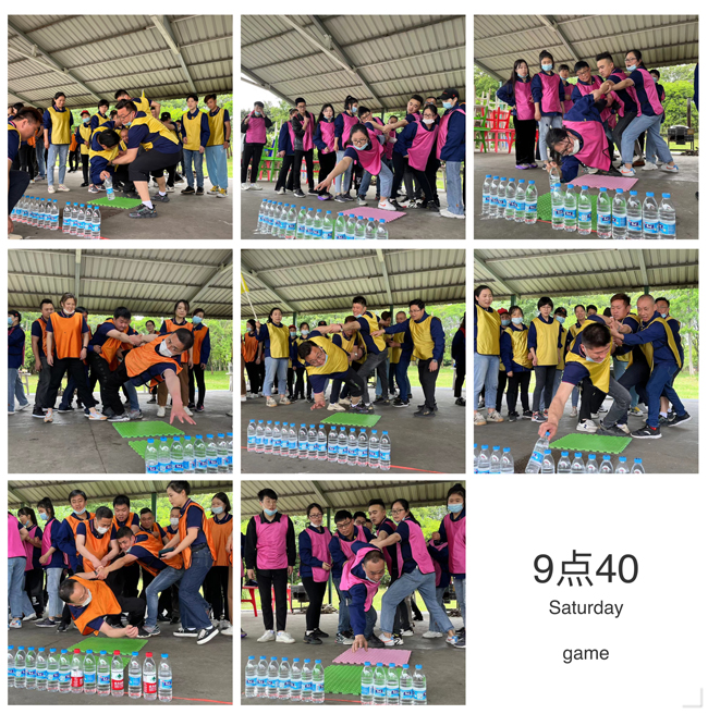 這個游戲的規則是每個隊一個圓圈,每個隊員都要穿過這個圓圈,看那個隊用時最短,每個隊都奮力爭先。眾人齊心協力,心向一處靠,力往一處使。團隊協作精神體現的淋漓盡致。