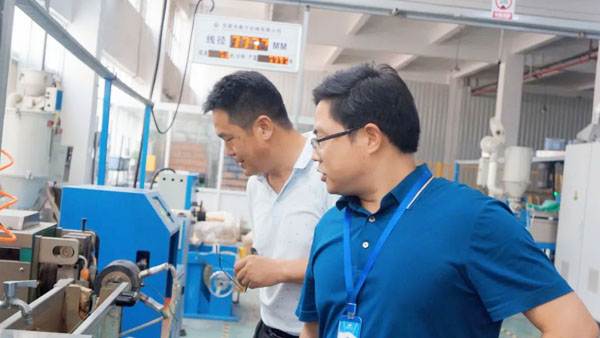 隨后,雙方一同前往參觀了勝維股份生產車間,董事長胡楊生、技術副總藍陽向來賓系統介紹了勝維股份自主研發的工業自動化線纜、新能源儲能線纜、5G線纜等產品技術特點優勢,及過程管控的細節進行詳細的介紹。