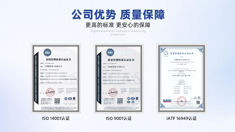 無錫勝維電氣有限公司自成立以來,已通過國際質量管理體系ISO14001、ISO9001、 IAFT16949等質量體系認證;所生產的電纜產品已獲得國內外權威機構認證(UL、CUL、 CQC、CCC、CE等多國認證)。